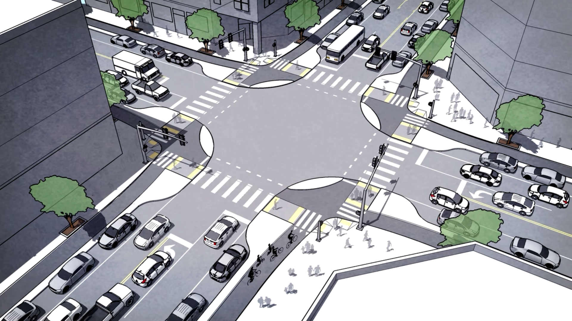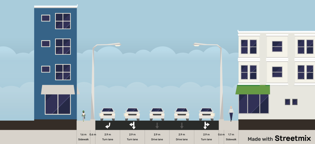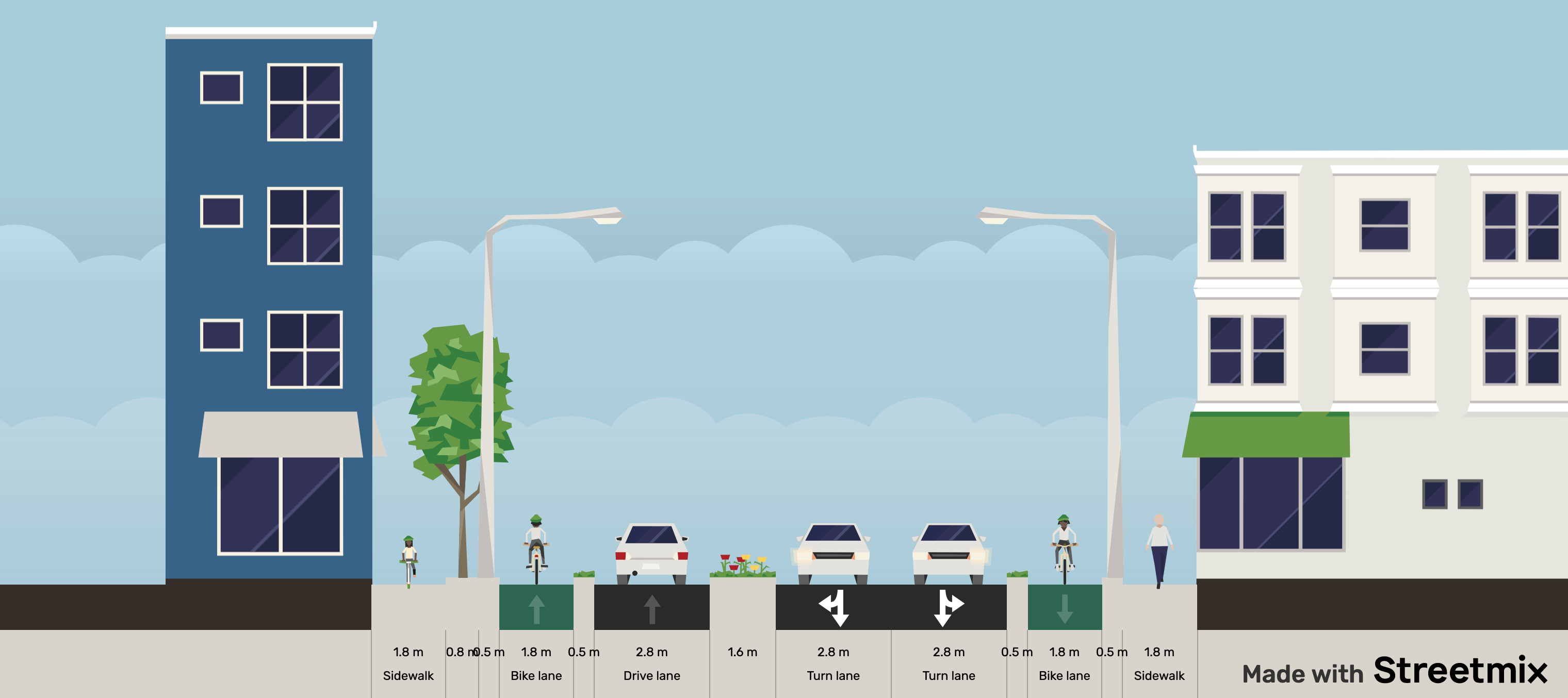 Thus, our designs incorporated techniques that focused on traffic calming measures. Things like protected intersections, narrower lane widths and reverting Harris St into a two-way street.